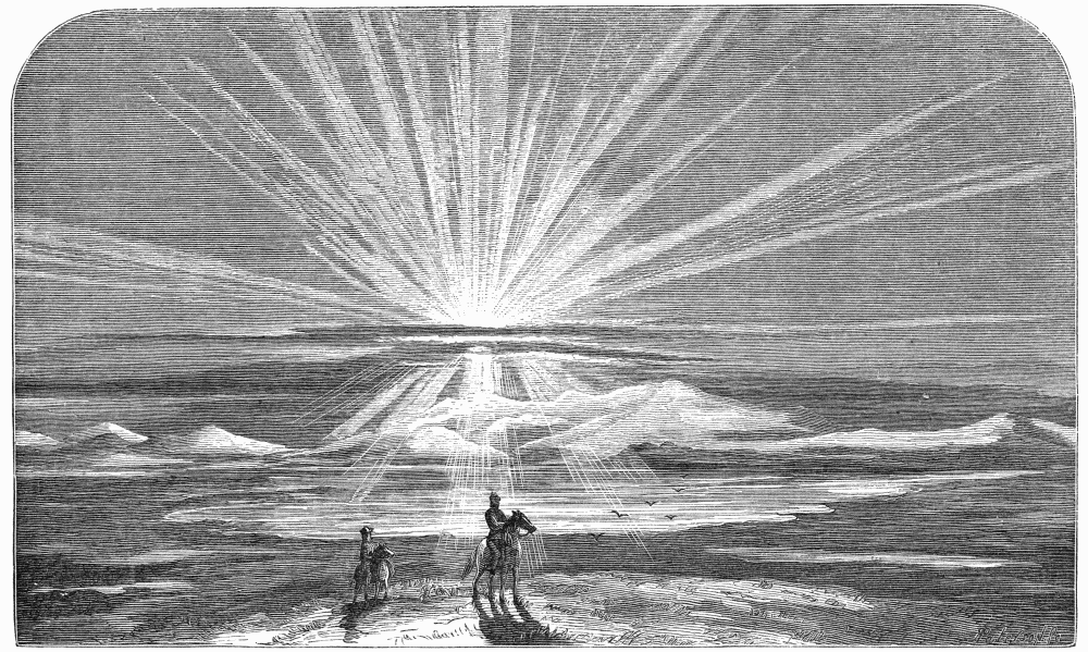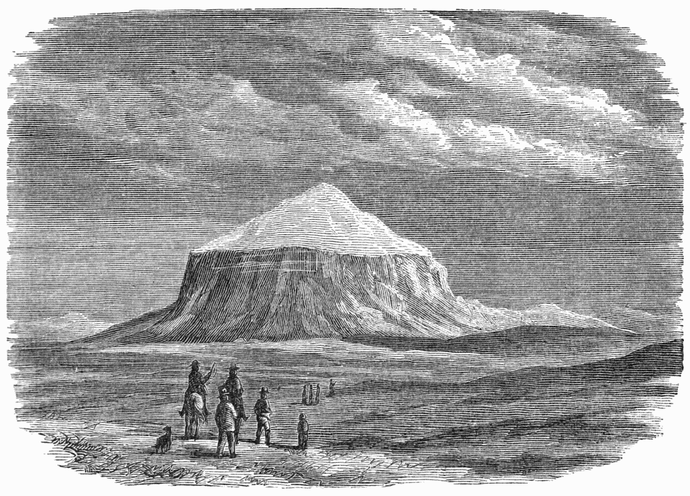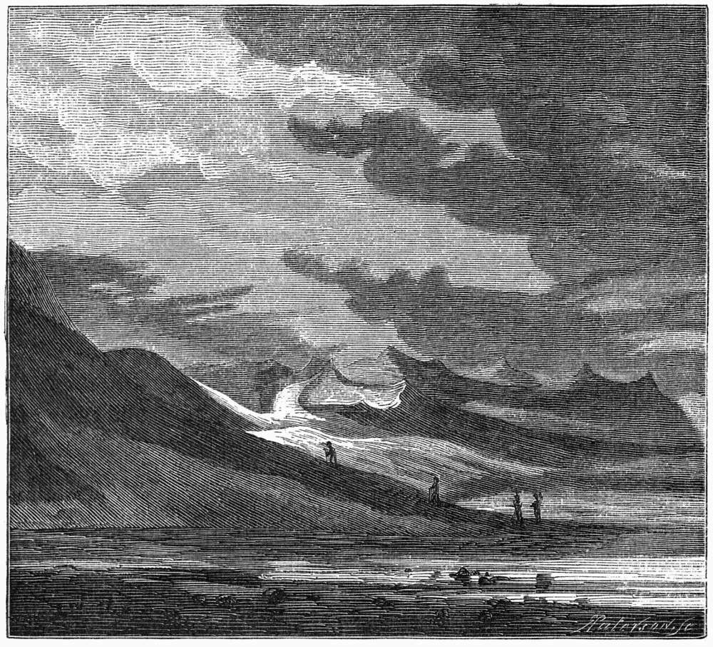 Welcoming us kindly, the Professor sat in his stuffed chair before a little table, and I noticed that he swayed his body to and fro like a Moslem boy reading the Koran. We talked of{12} his past life: he had forgotten the details, but he remembered the main points. After spending his youth in teaching mathematics and natural philosophy at the College, he resolved to map out his native island with theodolite, compass, and reflecting circle, and to this labour of love he conscientiously devoted twenty years, not twelve nor eighteen, as has been generally said. He was not very sure about his proceedings upon the Vatnajökullsvegr, the path north of the great south-eastern glacier, before his time considered utterly impracticable; and my curiosity was chiefly for this point. He mentioned his fellow-traveller, Síra Sigurðr Gunnarson, then a young man, who had just taken his degree. He believed that the march took place in July or August, but not after. Of the eight ponies, two were laden with hay, and they found grass at Tómasarhagi, north-west of the Vatnajökull. During his march, no volcano was observed, either in the glacier or to the north of it; and he seemed to have neglected tracing out the sulphur diggings.