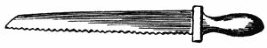 Bei den Sägen der Saalburg läßt sich deutlich nachweisen, daß die Sägezähne geschränkt wurden. An einem messerartigen Werkzeug der Saalburg findet sich nahe am Heft ein Einschnitt, der in seiner Weite und Tiefe den Einschnitten unserer Schränkeisen entspricht[20]. Man nimmt an, daß es sich um ein Schnitzmesser eines Tischlers handelt, der den Einschnitt zum Schränken der Sägen verwendete.