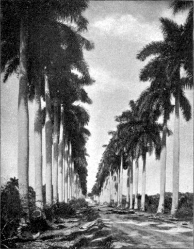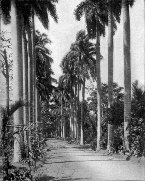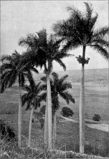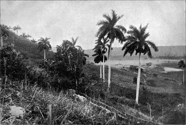 Dem Reisenden, der sich Cuba auf der zuerst bezeichneten Bahn nähert, zeigt die Insel ein überaus eindrucksvolles und typisches erstes Bild. Ein stattlicher Tafel[S. 35]berg taucht vor seinen Blicken aus den Fluten auf — der Yunque (Amboß) von Baracoa, der den Schiffern weithin als unverkennbares Wahrzeichen dient. Und indem der Kurs sich auf den kleinen Hafenplatz Baracoa zu lenkt, erscheinen dahinter in der Ferne scharfgeschnittene andere Bergzacken — die Cuchillas de Baracoa —, die gegen die Ostspitze der Insel, das Kap Maisi, niedriger und niedriger werden. Allmählich hebt sich dann auch das Vorland jener Berge deutlicher heraus, und das Auge unterscheidet drei merkwürdig regelmäßige Terrassenstufen, aus denen sich dasselbe aufbaut. Die ganze Landschaft aber prangt in dem Schmucke einer reichen Tropenvegetation, und vor allen Dingen winkt von allen Berghängen die ebenso anmutige als majestätische Königspalme (Oreodoxa regia) herab — der eigentliche Charakterbaum Cubas, den der palmenkundige Alexander von Humboldt einen der schönsten seines Geschlechtes nennt (Abb. 26 und 27). Brächten die üppige Vegetation und der Stufenbau des Landes nicht fremdartige Momente in das Bild, so könnte es wohl an die südeuropäischen Küstenbilder gemahnen.