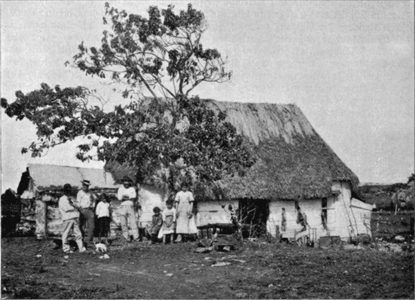 Neben der einfachen geographischen Differenzierung, die in solcher Weise zwischen den Spaniern und den Creolen — den „Peninsulares“ und den „Cubanos“ — eintritt, geht aber noch eine volkswirtschaftliche Differenzierung einher. In dieser Beziehung befinden sich die Creolen im Zusammenhange mit ihrem Volkscharakter großenteils in keiner günstigen Lebenslage, und die Mehrzahl von ihnen stellt ein ähnliches Proletariat dar wie die große Masse der Farbigen, mit der es in beständiger Verschmelzung begriffen ist — nichts sein eigen nennend als eine Machete (ein Haumesser zum Zuckerrohrschneiden und Dickichtlichten) und eine Hängematte, und je nach der gebotenen Arbeitsgelegenheit oder nach sonstigen Lockungen bald hier, bald da, aus der Hand in den Mund lebend, nicht gerade selten auch von denselben Desperado- und Banditenneigungen beseelt, wie ein Teil der Farbigen. Die Besitzer von großen Pflanzungen unter ihnen sowie auch die Besitzer von kleineren Landgütern irgend welcher Art sind aber vielfach tief in Schulden und sehen ihre Liegenheiten infolgedessen oft genug in die Hände neuer Ankömmlinge, seien dies Spanier oder seien es Amerikaner, Engländer, Deutsche u. s. w., übergehen. Die eingewanderten Spanier dagegen gelangen, auch wenn sie ohne eine Peseta (80 Pfennige Nennwert) in Habana angekommen sind, für die Regel rasch zu einem kleineren oder größeren Vermögen, und unlautere Mittel haben sie dabei durchaus nicht unbedingt nötig, wenn sie auch nicht völlig ausgeschlossen sein mögen. Da der bessere Landbesitz in Cuba seit lange in fester Hand war — dank vor allem den großen Schenkungen (mercedes) der spanischen Krone an ihre Günstlinge —, so wandten sich die neuen Einwanderer übrigens immer beinahe ausschließlich in die Städte, und es vollzog oder erhielt sich in dieser Weise noch eine weitere Sonderung zwischen ihnen und den Creolen, sowie zugleich auch eine weitere Vereinheitlichung der beiden Elemente innerhalb ihrer selbst. In den Städten, und namentlich in Habana, hatten die Spanier die Oberhand, das Land mit seinen Estancias (Farmhäusern), Bohios (Palmstrohhütten) und seinen Petreros (Viehzuchtgehöften) war aber rein creolisch (Abb. 22 und 23) — ein Umstand, in dem jederzeit die größte Stärke der Insurrektionsbewegungen gelegen hat.
