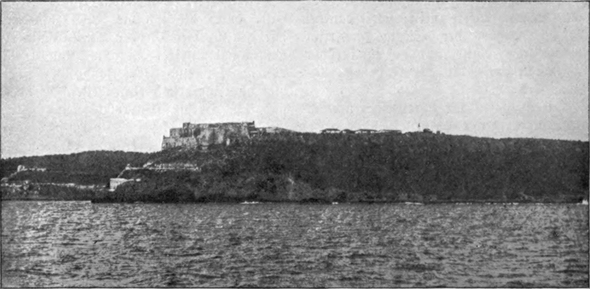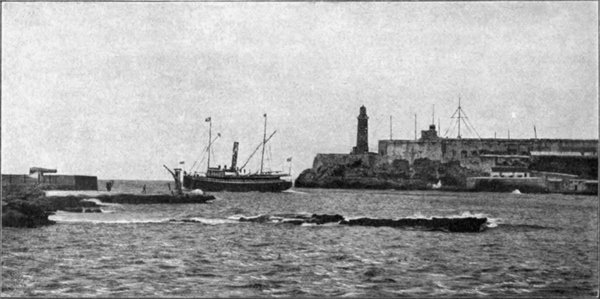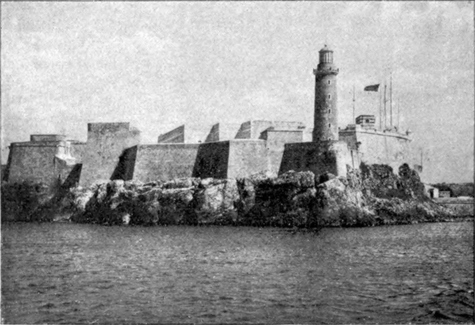 Was die Entwickelung der Niederlassungen auf Cuba im übrigen zurückhielt, waren einesteils die dem ganzen westindischen Erdraume eigentümlichen verheerenden Naturereignisse — Erdbeben, Orkane, Überschwemmungen und Sturmfluten —, anderenteils, und in einem viel hervorragenderen Maßstabe, vielfach wiederholte Einfälle von Piraten und Freibeutern — der bekannten Vorhut der Engländer und Franzosen bei ihren langjährigen Kämpfen mit den Spaniern um amerikanischen Kolonialbesitz. Dies war aber auf Haiti und Jamaica auch nicht anders, und gegenüber den Angriffen der Boucaniere ebenso wie der Engländer bewährte sich Cuba in jedem Falle als ein festerer Hort der spanischen Herrschaft als diese Inseln. Vor allen Dingen erwuchsen aus jenen Kämpfen eine Anzahl der stattlichen Bollwerke, die heute Habana umgeben: die die Hafenfront der Stadt beschützende alte Fuerza, welche schon De Soto anlegte (1538), der weithin drohende Morro (Abb. 6) und das demselben gegenüber gelegene Castello de la Printa, die den Eingang in die Bai bewachen, und die unter Philipp II. aufgeführt wurden (seit 1589), und die ausgedehnte, nur in Bruchstücken erhalten gebliebene Ringmauer der Stadt, deren Bau 1655 begonnen und 1738 beendigt wurde; ebenso aber auch der malerische Morro, am Eingange in die Bucht von Santiago, der in seiner ursprünglichen Gestalt aus dem Jahre 1643 und in seiner erneuerten Gestalt, nach der Zerstörung durch die Engländer (1661), aus dem Jahre 1663 stammt.