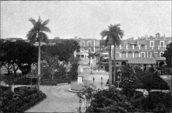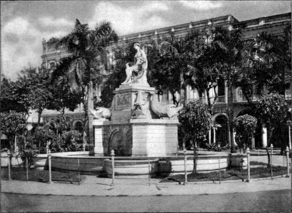 In den Jahren 1792–1817 erfolgte eine Verdoppelung der cubanischen Volkszahl von 272000 auf 553000 und in den Jahren 1818–1845 eine weitere Verdoppelung derselben auf 1112000, so daß der Aufschwung in dieser Beziehung als ein höherer und rascherer erscheint, als in den hervorragendsten Staaten der Nordamerikanischen Union, mit alleiniger Ausnahme von New York. Und im Einklange damit erschienen auch die wirtschaftlichen Leistungen der Kolonie mehr und mehr in einem sehr glänzenden Lichte. Die Tabakausfuhr stieg in dem Zeitraume von 1789–1850 von 56000 Centnern auf 360000 Centner und 94 Millionen Stück Cigarren (abgesehen von dem in diesem Artikel jederzeit stark betriebenen Schmuggelhandel), die Zuckerausfuhr wuchs von 1764 bis 1853 von 20000 auf 6,6 Millionen Centner, und die Kaffeeausfuhr war in den zwanziger und dreißiger Jahren des laufenden Jahrhunderts bedeutender als die von Java (1830–1835 500000 Centner jährlich). Die Häfen der Insel, und vor allem derjenige von Habana, belebten sich mit Tausenden von Fahrzeugen, die meisten älteren Städte gediehen zu ansehnlicher Größe und Schönheit (Abb. 8, 9 u. 10), und zugleich gesellten sich ihnen zahlreiche neue zu, und inmitten der sich weiter und weiter ausdehnenden, mit den genannten Stapelerzeugnissen bebauten Kulturgefilde erstanden allerwärts mächtige Wirtschafts- und Fabrikgebäude (Abb. 11 u. 12) sowie freundliche Herrenhäuser und Quintas. Die natürlichen Savannen nebst den[S. 11] durch das eingeführte Guinea- und Paragras (Panicum maximum und Panicum molle) verbesserten Kunstweiden nährten um das Jahr 1850 nahe an eine Million Rinder, und die Mahagoni- und Cedrelenschlägereien sowie die Kupfergruben der Provinz Santiago gewährten gleichfalls eine namhafte Ausbeute. Nicht so bald war in Europa und Nordamerika das Zeitalter der Eisenbahnen hereingebrochen, so machte sich Cuba auch diese bedeutsame Neuerung zu nutze, und die Linie Habana-Guines war bereits 1838 im Betriebe, während der Ausbau des heute auf der Insel vorhandenen Schienenstraßennetzes in der Hauptsache bis Anfang der sechziger Jahre bewirkt wurde. Der erste Seedampfer aus Nordamerika war aber schon im Jahre 1818 in der Bucht von Habana erschienen.