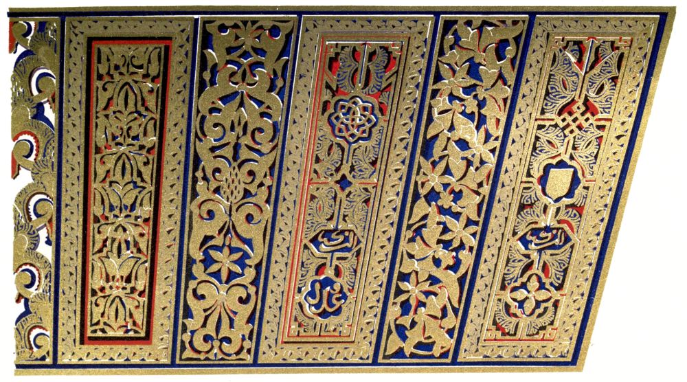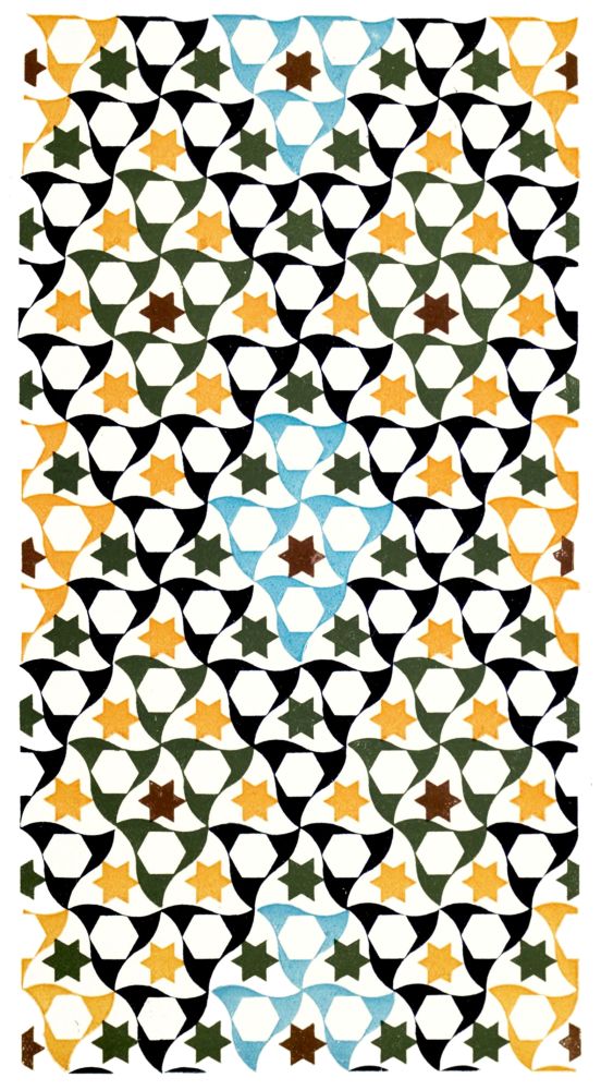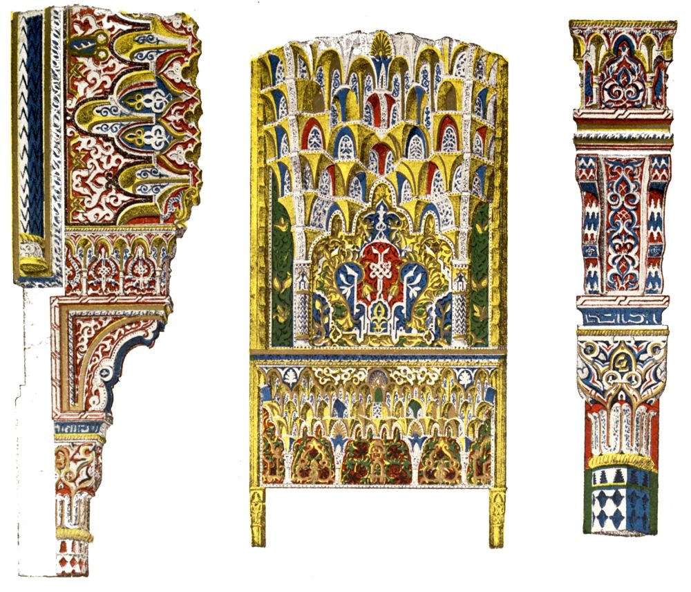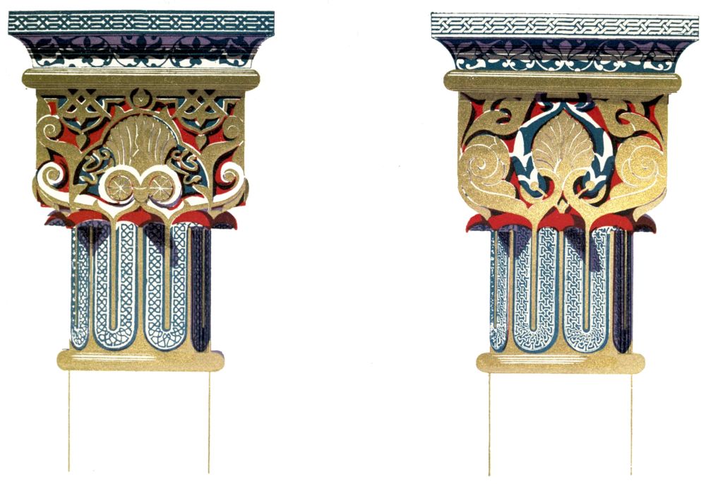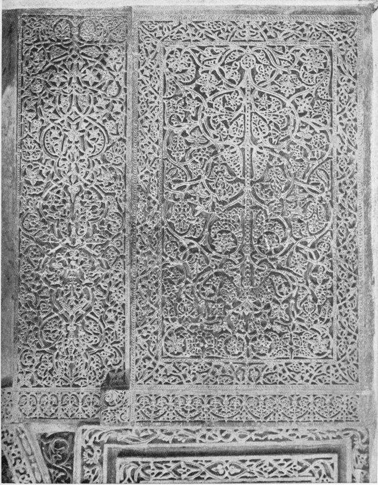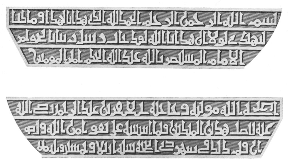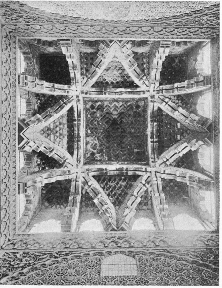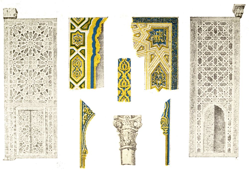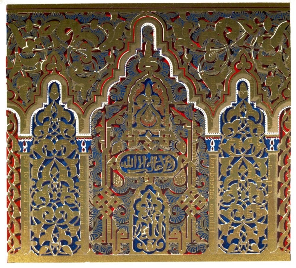 The great Aljama was completed in the year A.D. 793. The Emir Hisham took as great a personal interest in its progress as did his father, the walies of the provinces contributed to its decoration with the spoils from ancient monuments, the artificers with their genius, victors with their booty, the city with its workmen, the mountains of{54} Cordova and Cabra by yielding the treasures of their quarries, Africa with the trunks of its imperishable larch-pines, and Asia by inoculating the growing Arabic-Spanish art with its genius of ornament, its aspirations and its poetry.