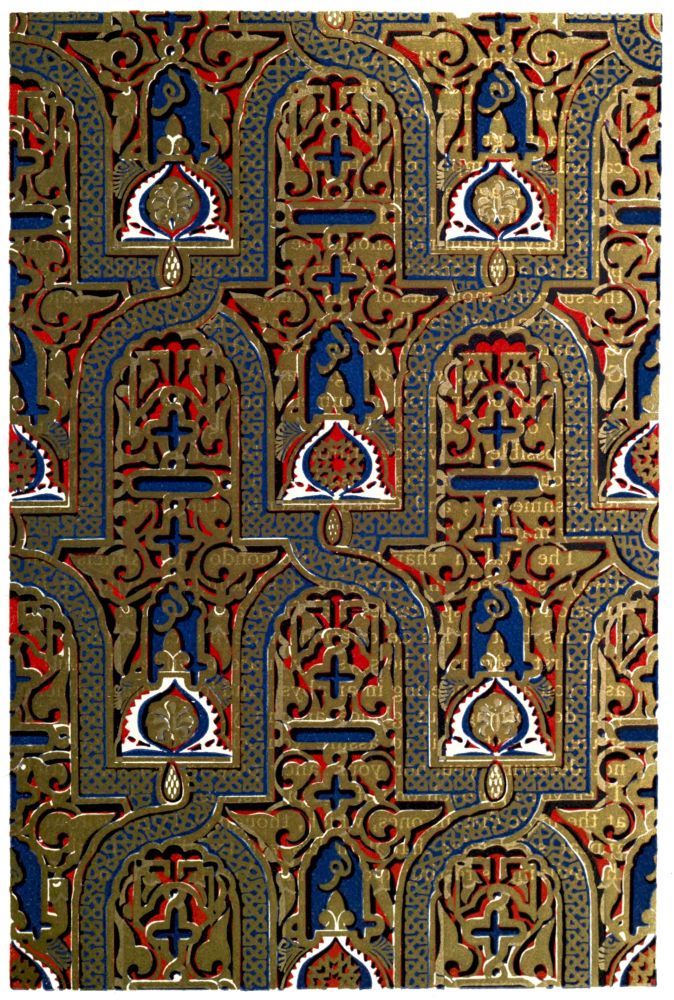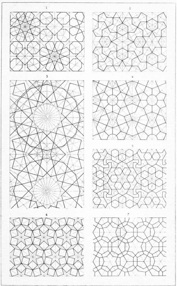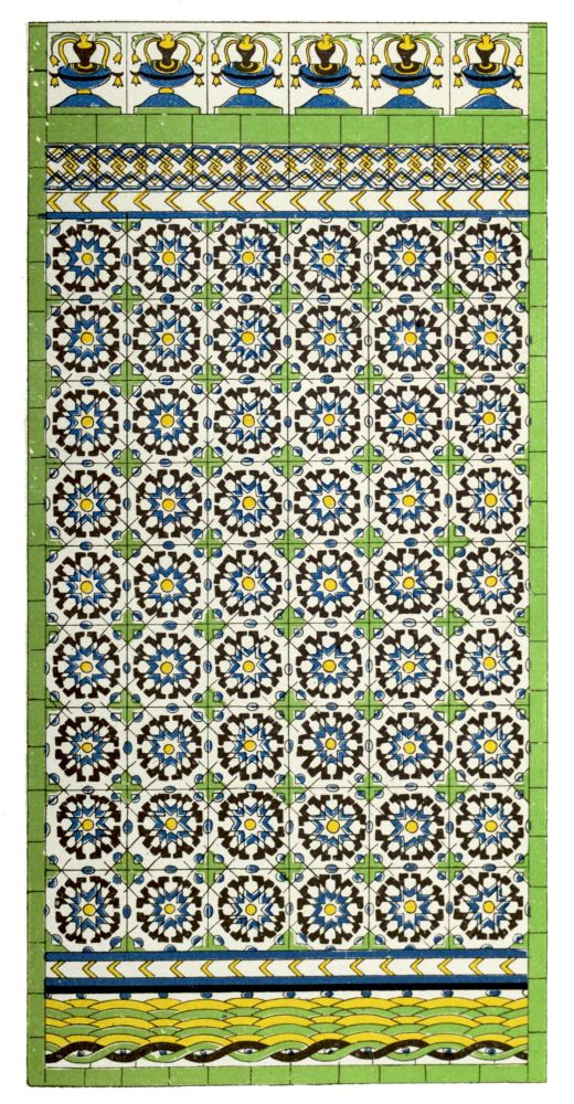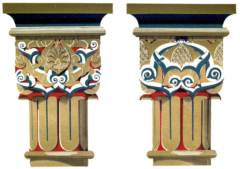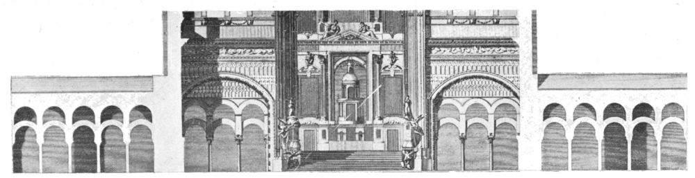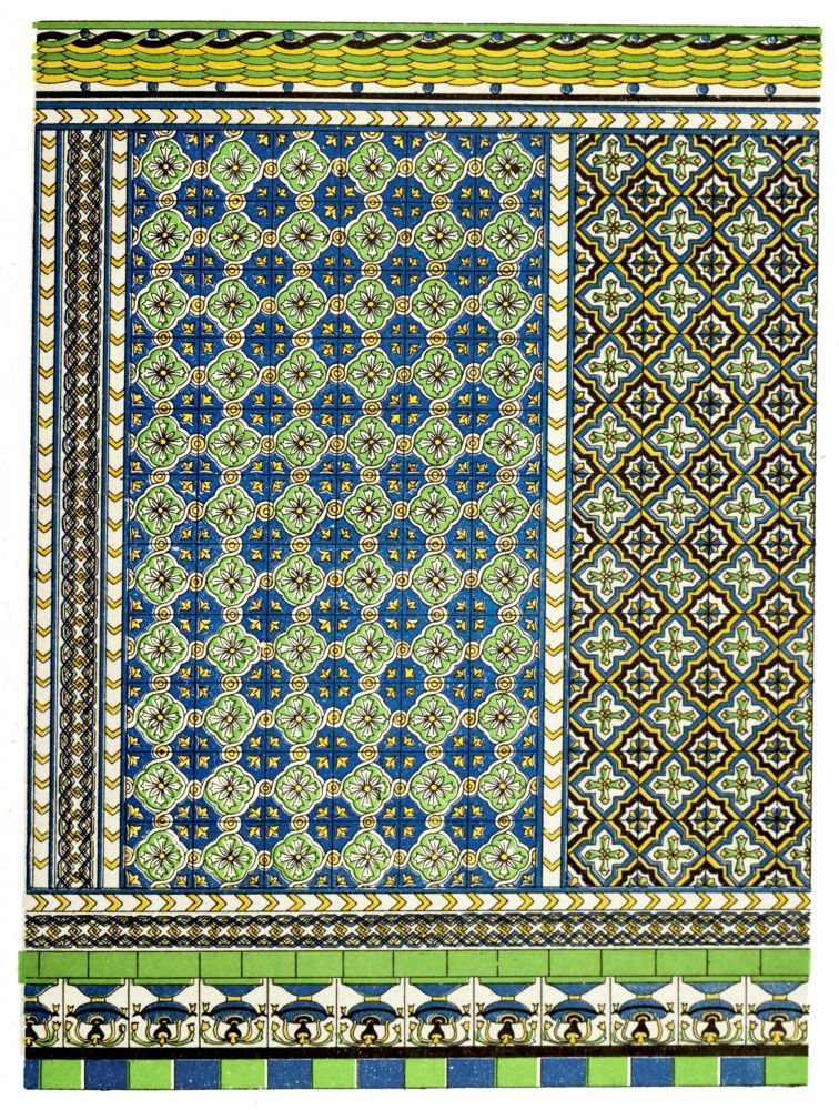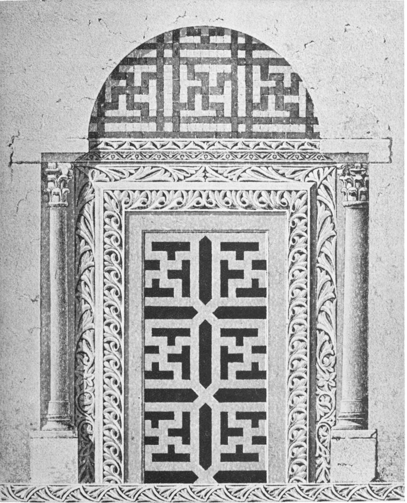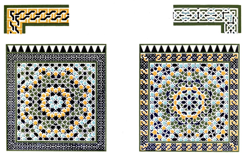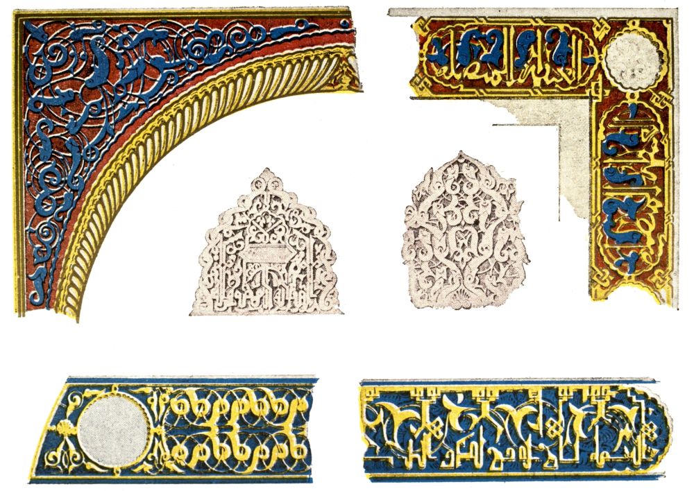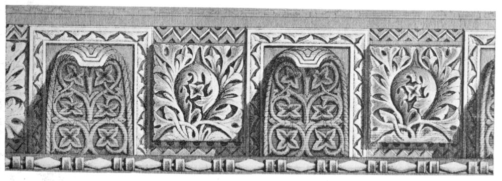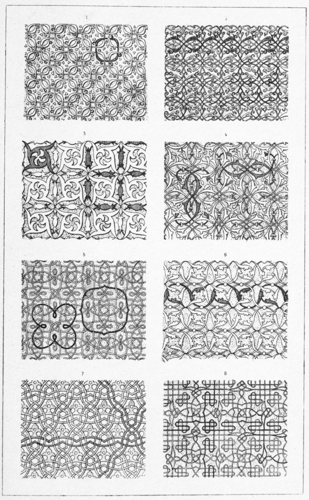 The great Aljama was completed in the year A.D. 793. The Emir Hisham took as great a personal interest in its progress as did his father, the walies of the provinces contributed to its decoration with the spoils from ancient monuments, the artificers with their genius, victors with their booty, the city with its workmen, the mountains of{54} Cordova and Cabra by yielding the treasures of their quarries, Africa with the trunks of its imperishable larch-pines, and Asia by inoculating the growing Arabic-Spanish art with its genius of ornament, its aspirations and its poetry.