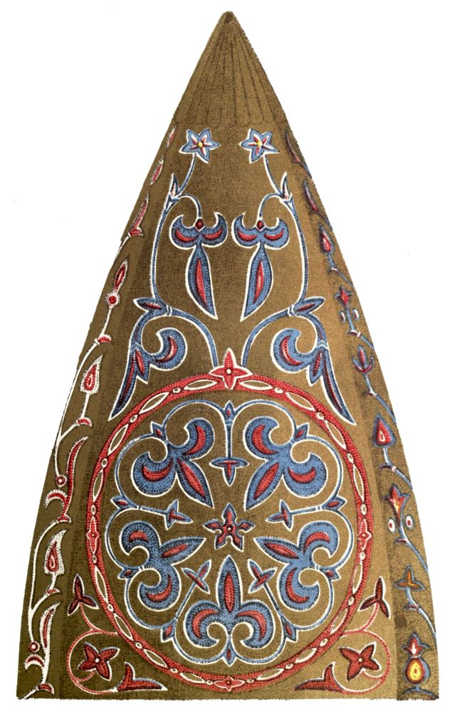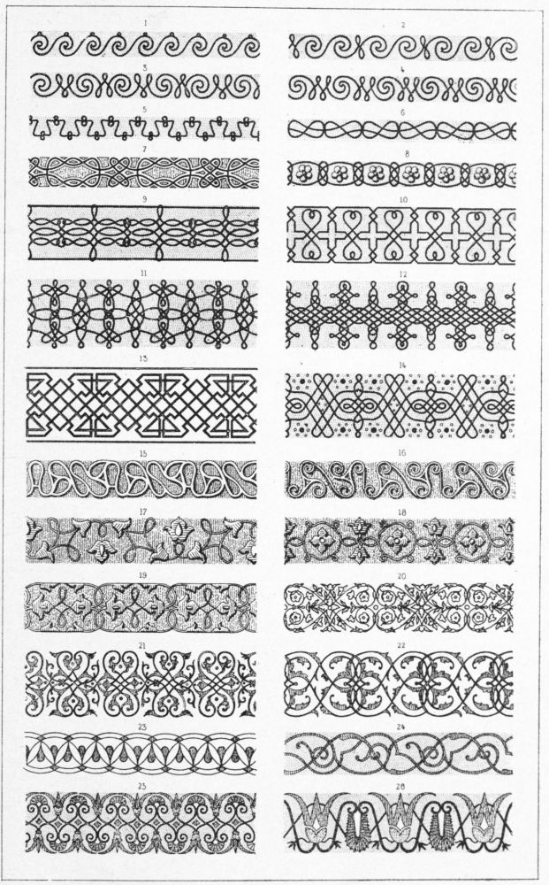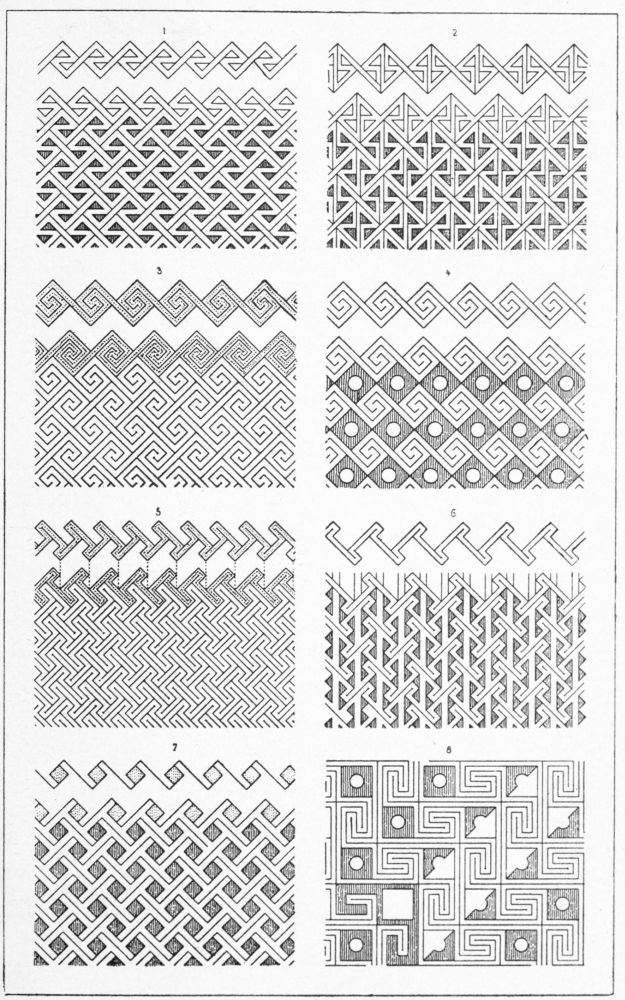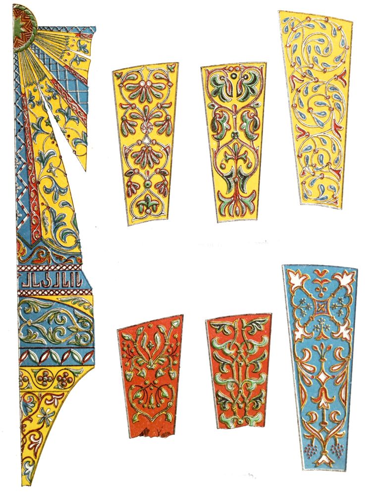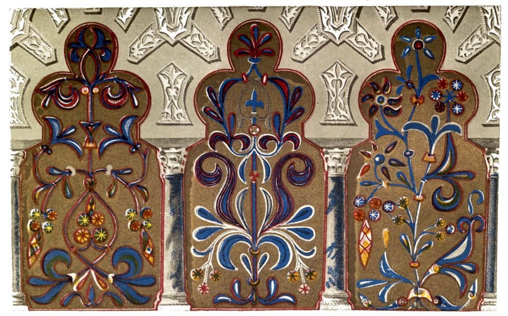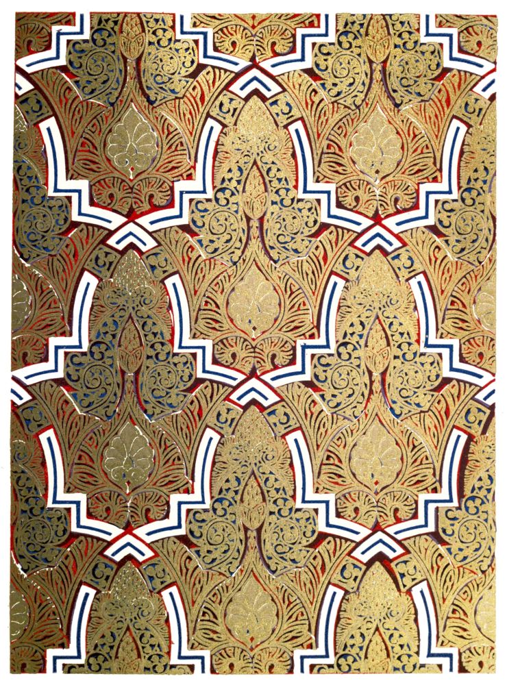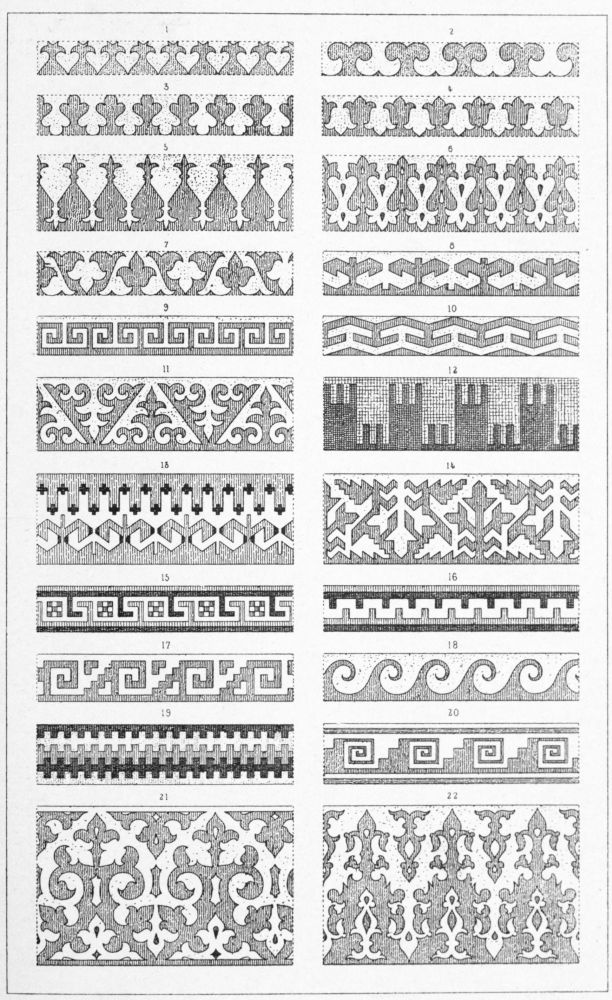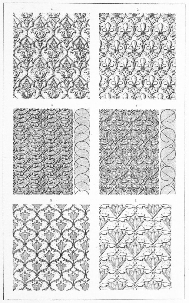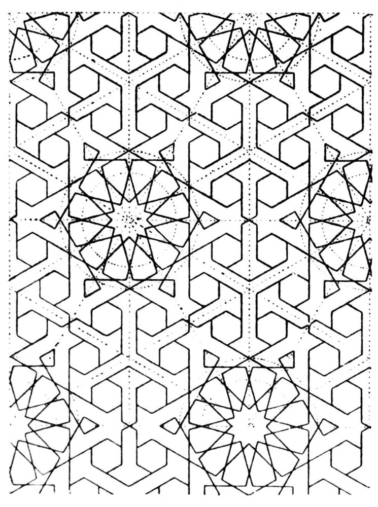 The great Aljama was completed in the year A.D. 793. The Emir Hisham took as great a personal interest in its progress as did his father, the walies of the provinces contributed to its decoration with the spoils from ancient monuments, the artificers with their genius, victors with their booty, the city with its workmen, the mountains of{54} Cordova and Cabra by yielding the treasures of their quarries, Africa with the trunks of its imperishable larch-pines, and Asia by inoculating the growing Arabic-Spanish art with its genius of ornament, its aspirations and its poetry.