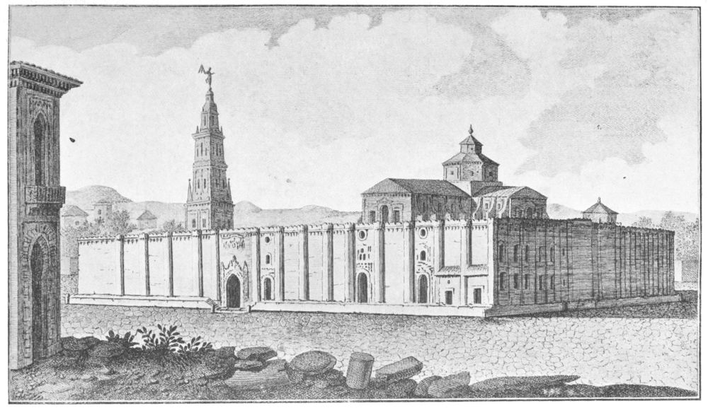 The treasury of Abd-er-Rahman was at this time in a flourishing condition, despite the large sums spent in adding splendour to the growing khalifate, and there appeared to be no difficulty in carrying out his project. But Umeya Ibn Yezid, the favourite secretary of the sultan, who, in his capacity of Katib, was instructed to make overtures for the purchase of the church on whose site the khalif intended to build the new mosque, soon found that the negotiations were beset by serious difficulties. The Christians held firm to the conditions of capitulation granted them by the Saracen conquerors of Cordova, and were not at all inclined to sell to Abd-er-Rahman the temple upon which he had set his heart. This building is described by Pedro de Madrazo as a spacious basilica, which they shared with the followers of the Prophet, since the Mohammedans, according to the practice established amongst them by the advice of the Khalif Omar, shared the churches of the conquered cities with the Christians, and, after taking Cordova, had divided one of the principal basilicas in two parts, one of which they conceded to the Cordovans, reserving the other, which they at once turned into a mosque, for themselves. The Christians had religiously paid the tribute exacted from them that they might keep their churches, bishops, and priests, but this had not protected them from unjust exactions and plunderings at the hands of the governors and representatives of the Eastern khalifs. Knowing this, Abd-er-Rahman was anxious to acquire the desired site without violence, and, with his natural sagacity, he perceived that the religious zeal of the native Christians was much less fervent than that of his own people. Captivity and affliction had damped the old ardour of the natives of Cordova, which, in his day, was no longer the heroic colony, so anxious for martyrdom, and so prodigal of its blood, as it was at the time when the flock of Christ was guided by the great Osius under the persecutions of Diocletian and Maximilian. Neither was it the Cordova which had endured wars, hunger, and plague sooner than be contaminated with Arianism, and the khalif knew, too, that in spite of the education given to the Christian youth in the schools and colleges of the monasteries, where many young priests and secular scholars promised to be a future danger to the Mohammedans, the Church at Cordova was suffering grievous wounds from the new doctrines of Migencio and Elipando. He was, therefore, the more surprised to receive a stubborn refusal to his offer, but the estimation in which he held the vanquished people and their leaders, led him to believe that he could overcome their obstinacy by quiet persistence, and by trusting to time to undermine their scruples. His policy was justified by its eventual success.