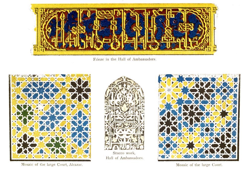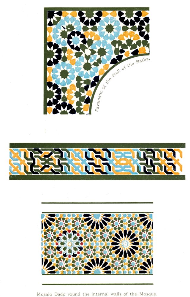 But with this wealth of literary material to hand, I have remembered that it is my collection of illustrations, rather than on the written word, that I must depend. From the nature of Arabian art, and the characteristic minuteness of the details of which Morisco decoration is composed, lengthy descriptions of architec{x}ture, unaccompanied by illustrations, become not only tedious but positively confusing to the reader, while, on the other hand, a sufficiency of illustrations renders exhaustive descriptions superfluous. I have striven to do justice to the subject in this direction, not without hope of achieving my purpose, but with a vast consciousness of the fact that, neither by camera, nor brush, nor by the pen, can one reflect, with any fidelity, the effects obtained by the Moorish masters of the Middle Ages. In their art we find a sense of the mysterious that appeals to one like the glint of moonlight on running water; an intangible spirit of joyousness that one catches from the dancing shadows of leaves upon a sun-swept lawn; and an elusive key to its beauty, which is lost in the bewildering maze of traceries and the inextricable network of designs. The form, but not the fantasy, of these fairy-like, fascinating decorations may be reproduced, and this I have endeavoured to do.
