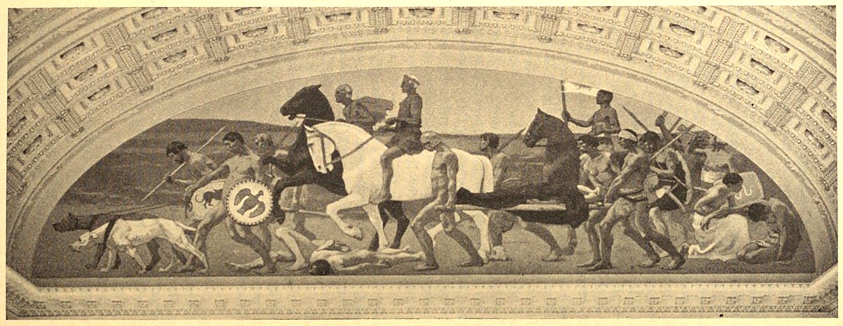 The writer desires to express his great obligation, for much information and courtesy, to Mr. Bernard R. Green, in charge of the Library during the time that this book was preparing, to Mr. Edward Pearce Casey, and to Mr. Spofford. Without their assistance the book could hardly have been written. Thanks are due, also, to many of the individual artists for their courtesy in explaining the meaning and application of their work—and in particular to Mr. Elmer E. Garnsey, for a great deal of painstaking assistance.