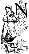 Thus equipped I awaited developments. But my dinner—well, I followed Mrs. Stanard down the uncarpeted stairs into the basement, where a large number of women were eating. She found room for me at a table with three other women. The short-haired slavey who had opened the door now put in an appearance as waiter. 13Placing her arms akimbo and staring me out of countenance, she said: