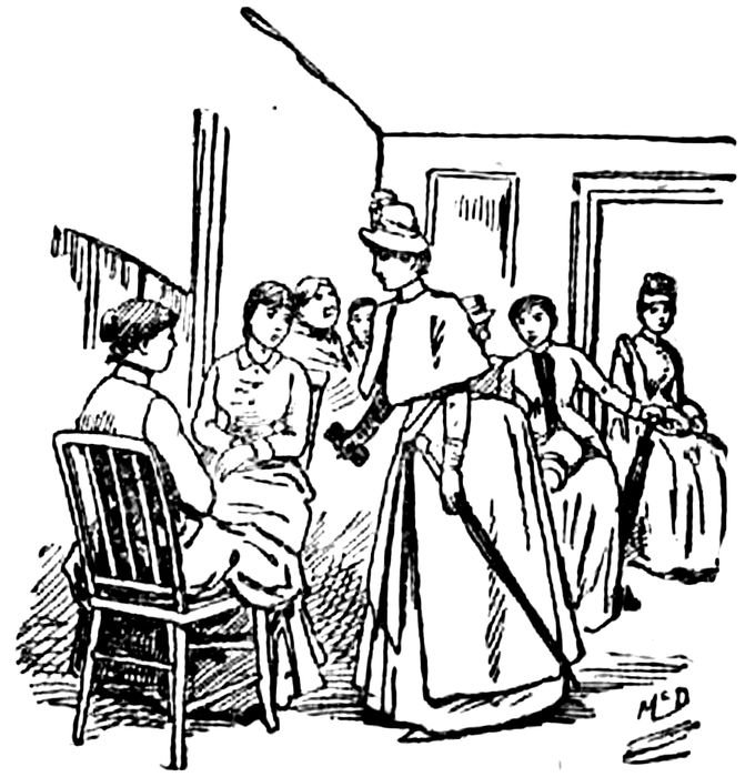 I followed these not overkind or polite instructions and found myself in a dark, uncomfortable back-parlor. There I awaited the arrival of my hostess. I had been seated some twenty minutes at the least, when a slender woman, clad in a plain, dark dress entered and, stopping before me, ejaculated inquiringly, “Well?”