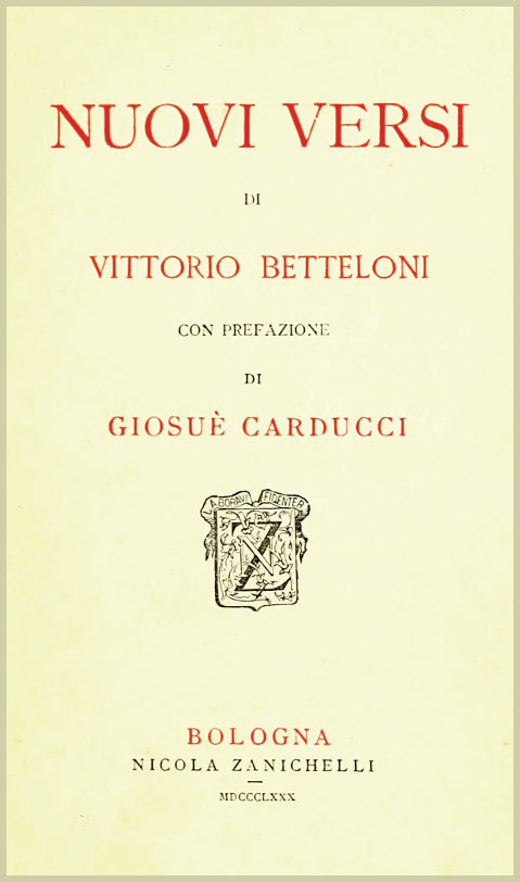 Perchè, a dir vero, la verità di certi veristi sarà di qual paese piaccia meglio ai lettori o all'autore, ma verità italiana non è di certo: ora la verità, per esser verità vera, ha da essere anche locale, e quella dei su lodati veristi di locale, cioè d'italiano, non ha nulla, nè meno la lingua; ché lingua italiana non può chiamarsi quella miseria di cento linfatiche parole con le quali quella povera gente si arrapina a rattoppare gli sdruci delle sue versioni da qualche poeta francese di terzo o quarto ordine. Ora il Betteloni non solo seppe percepire il vero della vita odierna italiana con elezione d'artista, ma lo seppe verseggiare con lingua varia abbastanza se non sempre finissima, con stile sempre suo e spesso accurato.
