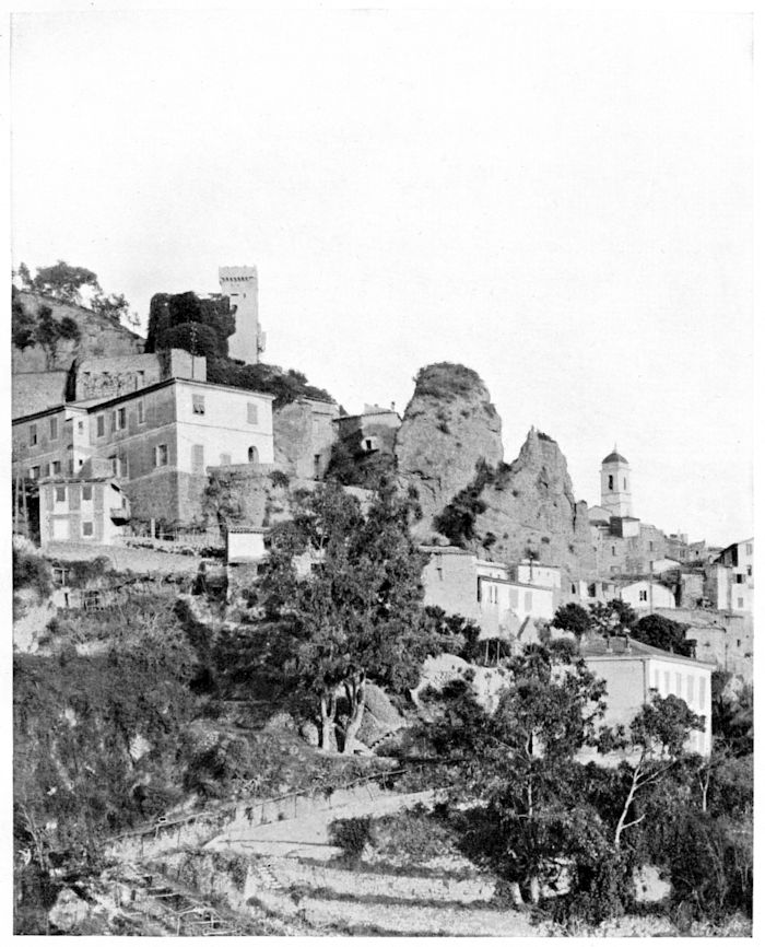 As early as about 800 the Saracens had made themselves masters of Eze, La Turbie and Sant’ Agnese; while by 846 they seem to have terrorised the whole coast from the Rhone to the Genoese Gulf, and in the first half of the tenth century to have occupied nearly every sea-town from Arles to Mentone. Finally, in 980, a great united effort was made to drive the marauders out of France. It was successful. The leader of the Ligurian forces was William of Marseilles, first Count of Provence, and one of the most distinguished of his lieutenants was a noble Genoese soldier by name Gibellino Grimaldi. It is in the person of this knight that the Grimaldi name first figures in the history of the Ligurian coast.
