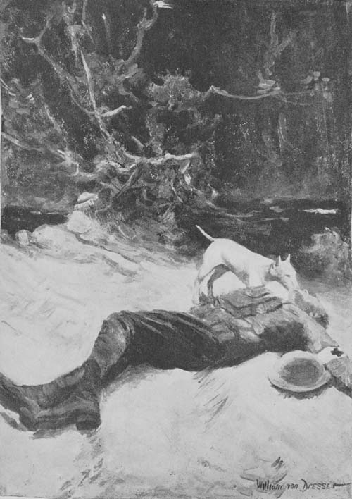 Presently he will come over to you unable to stand it any longer and put his nose into your hand, or fall to licking it frantically. He is not forward or aggressive, but full of[14] humility and abasement. He knows he is only a dog, while you are a dog’s God, but he wants to comfort you, to take your load upon his own shoulders and help you bear it.