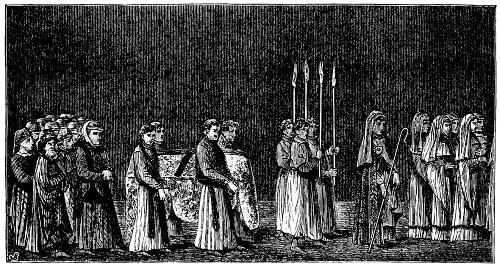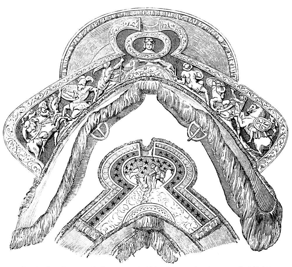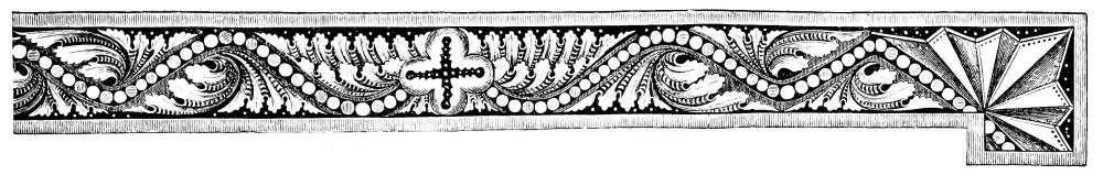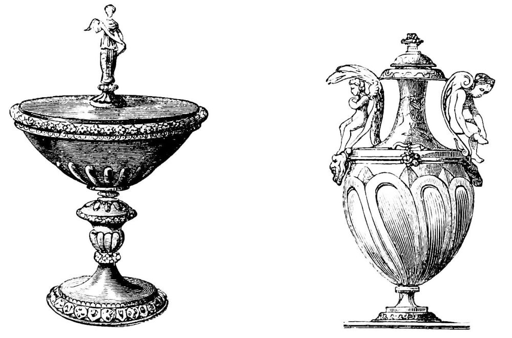 | Simplicity of Furniture among the Gauls and Franks.—Introduction of costly taste in articles of Furniture of the Seventh Century.—Arm-chair of Dagobert.—Round Table of King Artus.—Influence of the Crusades.—Regal Banquet in the time of Charles V.—Benches.—Sideboards.—Dinner Services.—Goblets.—Brassware.—Casks.—Lighting.—Beds.—Carved-wood Furniture.—Locksmith’s Work.—Glass and Mirrors.—Room of a Feudal Seigneur.—Costliness of Furniture used for Ecclesiastical Purposes.—Altars.—Censers.—Shrines and Reliquaries.—Gratings and Iron-mountings. | ||
