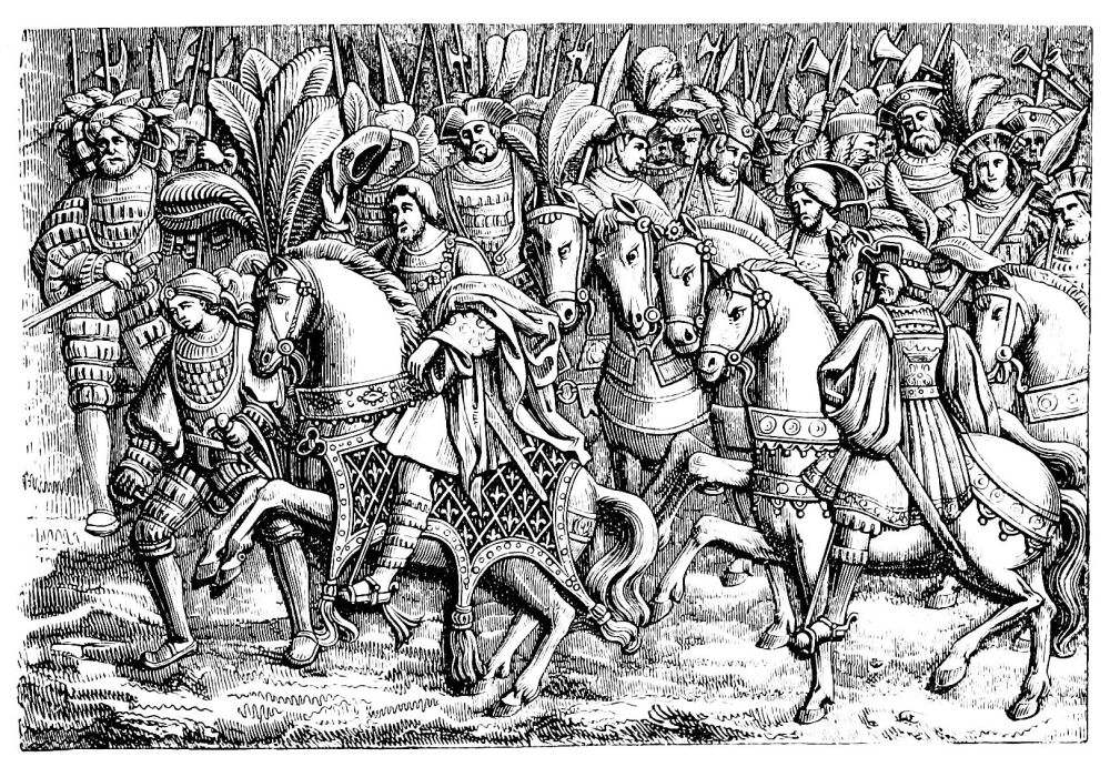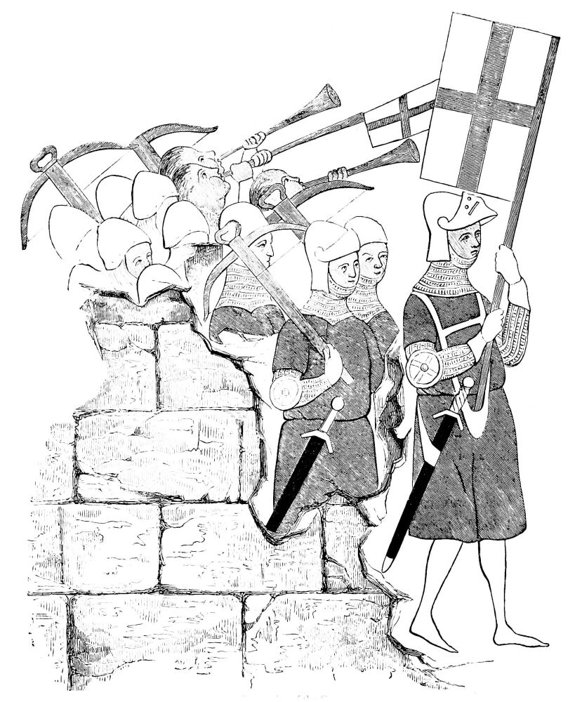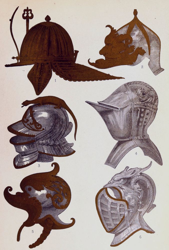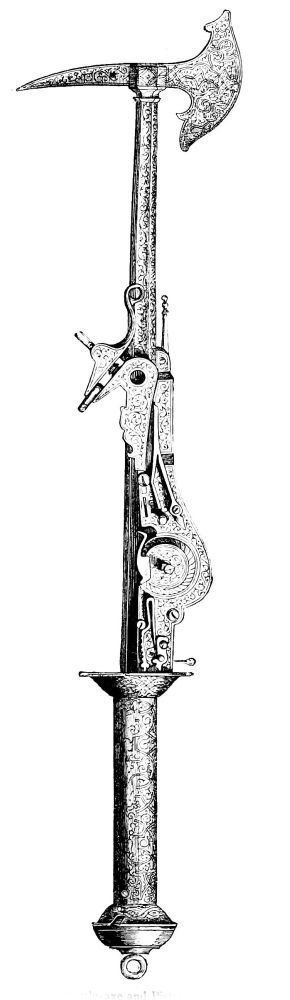 | Arms of the Time of Charlemagne.—Arms of the Normans at the Time of the Conquest of England.—Progress of Armoury under the Influence of the Crusades.—The Coat of Mail.—The Crossbow.—The Hauberk and the Hoqueton.—The Helmet, the Hat of Iron, the Cervelière, the Greaves, and the Gauntlet; the Breastplate and the Cuish.—The Casque with Vizor.—Plain Armour and Ribbed Armour.—The Salade Helmet.—Costliness of Armour.—Invention of Gunpowder.—Bombards.—Hand-Cannons.—The Culverin, the Falconet.—The Arquebus with Metal-holder, with Match, and with {xii}Wheel.—The Gun and the Pistol. | ||
