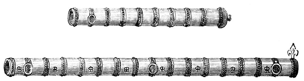 | Its Antiquity.—The Trésor de Guarrazar.—The Merovingian and Carlovingian Periods.—Ecclesiastical Jewellery.—Pre-eminence of the Byzantine Goldsmiths.—Progress of the Art consequent on the Crusades.—The Gold and Enamels of Limoges.—Jewellery ceases to be restricted to Purposes of Religion.—Transparent Enamels.—Jean of Pisa, Agnolo of Siena, Ghiberti.—Great Painters and Sculptors from the Goldsmiths’ Workshops.—Benvenuto Cellini.—The Goldsmiths of Paris. | ||