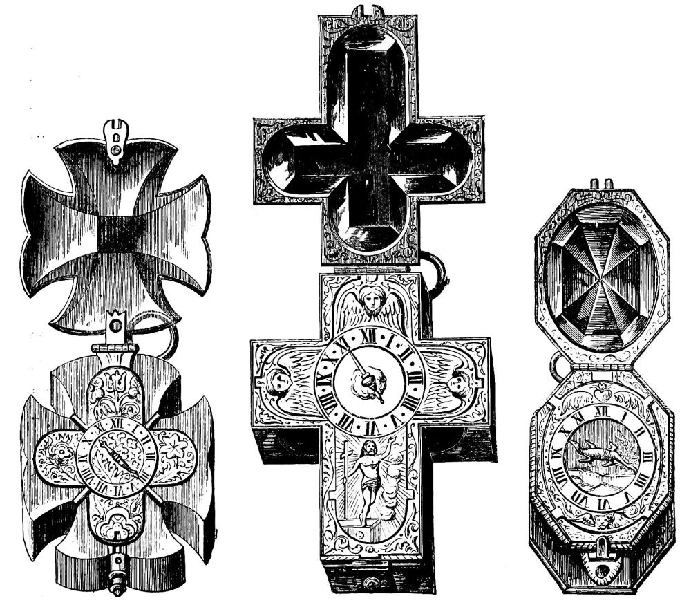 | Modes of measuring Time among the Ancients.—The Gnomon.—The Water-Clock.—The Hour-Glass.—The Water-Clock, improved by the Persians and by the Italians.—Gerbert invents the Escapement and the moving Weights.—The Striking-bell.—Maistre Jehan des Orloges.—Jacquemart of Dijon.—The first Clock in Paris.—Earliest portable Timepiece.—Invention of the spiral Spring.—First appearance of Watches.—The Watches, or “Eggs,” of Nuremberg.—Invention of the Fusee.—Corporation of Clockmakers.—Noted Clocks at Jena, Strasburg, Lyons, &c.—Charles-Quint and Jannellus.—The Pendulum. | ||