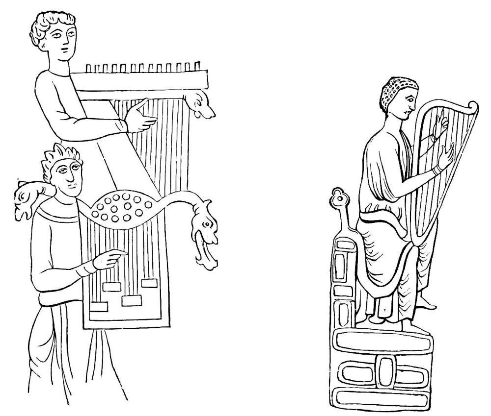 | Music in the Middle Ages.—Musical Instruments from the Fourth to the Thirteenth Century.—Wind Instruments: the Single and Double Flute, the Pandean Pipes, the Reed-pipe.—The Hautboy, the Flageolet, Trumpets, Horns, Olifants, the Hydraulic Organ, the Bellows-Organ.—Instruments of Percussion: the Bell, the Hand-bell, Cymbals, the Timbrel, the Triangle, the Bombulum, Drums.—Stringed Instruments: the Lyre, the Cithern, the Harp, the Psaltery, the Nable, the Chorus, the Organistrum, the Lute and the Guitar, the Crout, the Rote, the Viola, the Gigue, the Monochord. | ||