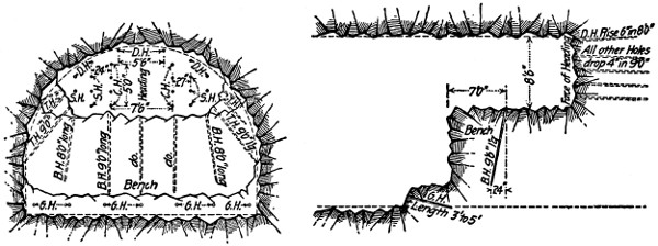 Besides this, other changes have been made in order to give greater attention to American method of excavating tunnels through rock and loose soil. This will explain the treatment of the crown-bar and also the extensive illustration of the heading and bench method as well as the drift method of driving tunnels which is followed in the United States.