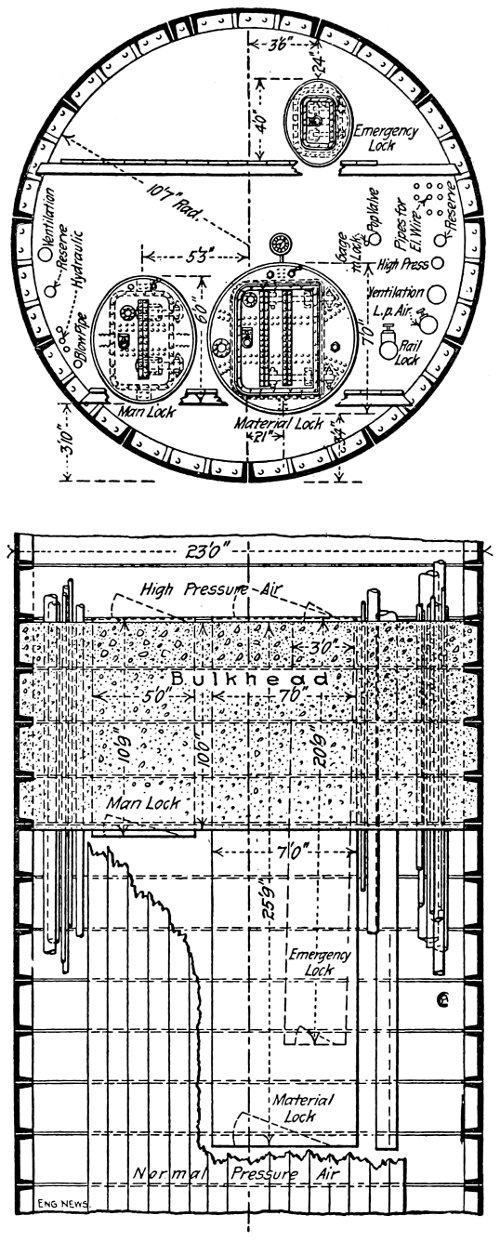 | XVIII. | Submarine Tunneling (continued); The Compressed Air Method; The Milwaukee Water-Works Tunnel | 225 |