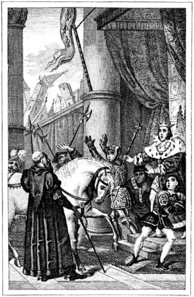 Per queste buone ragioni dimando anch'io umilmente perdono, se non valgo più degli altri autori; però, perchè non voglio in tutto rinnegare l'utile, se non so imitare i maestri di musica, seguirò l'esempio de' coreografi. Al primo alzar del sipario, essi sogliono attelare sul palco tutta la gente che hanno parte al ballo, dal re fino al fante, amici e nemici, e sovente anche quelli che devono arrivare da lontani paesi; tutte quelle creature fanno [4] quattro smorfie, una danza fragorosa, si mischiano, si confondono, quasi non se ne cava più nulla; ma in fine a gran ventura capita un messo, un carro, un temporale; si acqueta quel fragore, tutti si dividono e ricomincia l'azione.