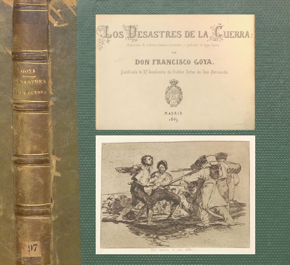 El nombre de Goya es bien conocido de todos los amantes de las Artes, y ha volado por España y fuera de ella acompañado de una fama merecida: á pesar de la poca justicia con que generalmente son juzgados los hombres de mérito verdadero por sus contemporáneos, la generación que concluye, que le conoció y trató en su vigor, la que hoy média su camino, que le alcanzó en sus últimos años, y la que comienza su carrera artística y ha visto sus obras y oido hablar do él á sus padres y á sus maestros, todas unánimes le conceden un honroso lugar en la série larga y brillante de los artistas españoles. Y no debe Goya su nombre y su fama á la circunstancia de haber escaseado tanto los artistas notables en España durante el último tercio del siglo pasado y el primero del presente, no: Goya hubiera conquistado siempre y en cualesquiera circunstancias el renombre que no podia menos de adquirirle su originalidad verdadera, hija de la singular independencia de su carácter: maestro de sí mismo, puede decirse que por sí solo constituyó Escuela, adoptando un modo de ver en artes que nadie tuvo antes que él, que acaso nadie seguirá despues. No se propone la Academia hacer una crítica del génio y de las obras de este hombre singular, que ha sido ya juzgado con algún acierto por propios y estraños; y al publicar una coleccion, hasta ahora inédita, de sus estimadas aguas-fuertes, cumple solo un honroso deber, contribuyendo á dar á conocer cada vez, mas las obras características de tan distinguido maestro, y tan digno individuo de este cuerpo artístico. La coleccion que él designó con el nombre de Estragos ó Desastres de la Guerra, es sin disputa una de las más notables que en este género produjo Goya: en ella se descubre todo el brío de su fogosa imaginación, exaltada y sobreescilada por un vivo sentimiento de patriotismo, en aquellos terribles momentos en que una injusta invasión estranjera pretendía humillar el orgullo y altivez característicos del nombre castellano: ¿qué mucho, pues, que un español, un aragonés y un hombre del carácter duro é independiente de Goya se dejase arrastrar muchas veces hasta la exageracion y la caricatura? En cambio respira esta obra novedad en los asuntos, originalidad en los tipos, fuego en la composicion, valentía y seguridad en la mancha, decision y hasta finura en el dibujo. Para que nada falte á esta singular coleccion, las leyendas puestas á cada lámina son otro rasgo mas del génio de su autor: concisas, incisivas y picantes añaden carácter, si añadírselo es posible á lo que ya consignó el lápiz del artista: una breve frase, y á veces una palabra sola, revelan con su misma rapidez la idea fugaz que su mente concibiera en un momento y su mano representara en poco más de otro. La Academia, que ha adquirido las planchas de esta coleccion, conocida de muy pocos y de la que solo se habian sacado un número reducido de pruebas, la publica con la confianza de que ha de merecer una favorable acogida á los amantes de las Artes españolas.