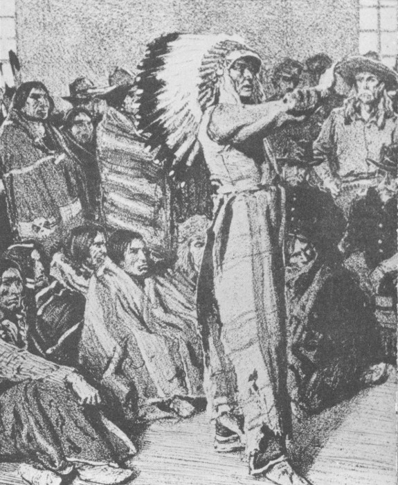 Both Red Cloud and Spotted Tail were scheduled to speak in favor of selling the Black Hills but just as Red Cloud began to make his oration Little Big Man, armed to the teeth, threatened to shoot the first Indian who spoke in favor of ceding the Black Hills to the white men. Spotted Tail advised the commissioners to return to the safety of Camp Robinson immediately—advice which they took.
