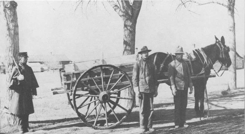 The young warriors amused themselves by shooting over the military tents and Colonel Smith warned that he would attack the Indian village if any of his men were injured. Troops from Camp Robinson generally carried arms, and the daily wood train was under heavy escort.