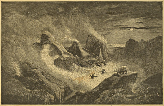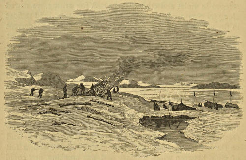 | 1. The sunrise.—2. Our first look at each other.—3. Visits from bears.—4. The carnival.—5. Continual fall of snow.—6. Return of birds.—7. Ill health of Dr. Kepes.—8. Bear shot.—9. A road constructed.—10. Reading without artificial light.—11. Accumulation of rubbish round the ship.—12. Begin to dig out the ship.—13. Surprised by bears.—14. Our hopes to reach Siberia.—15. Snow continues to fall.—16. Visited by birds.—17. The steam machinery put in working order.—18. A partial eclipse of the sun.—19. Birth of four Newfoundland puppies. | |