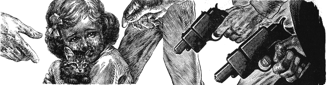 A little girl was out beyond the last fire; her back turned to him as she knelt in the grass and worked at something. He came closer and saw she was trying to tie a white cord around the neck of a half grown kitten. It sat with resigned patience as she struggled with earnest, inexperienced fingers to tie a knot that would not fall apart. She was talking to it as she worked:
