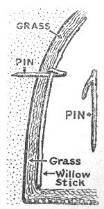 “This resting stage we used to rest on after working in the garden; and to sing here the songs that we sang at this season of the year, and which I have called watch-garden songs. A place to cook in was not far away on the edge of the garden. It was a kind of booth, or bower. With a stake we made holes in the ground in a circle, and into the holes thrust willows. The tops of these willows we bent toward the center and joined together to make a bower. Over the top we threw a robe. We built a fire beneath to cook by.