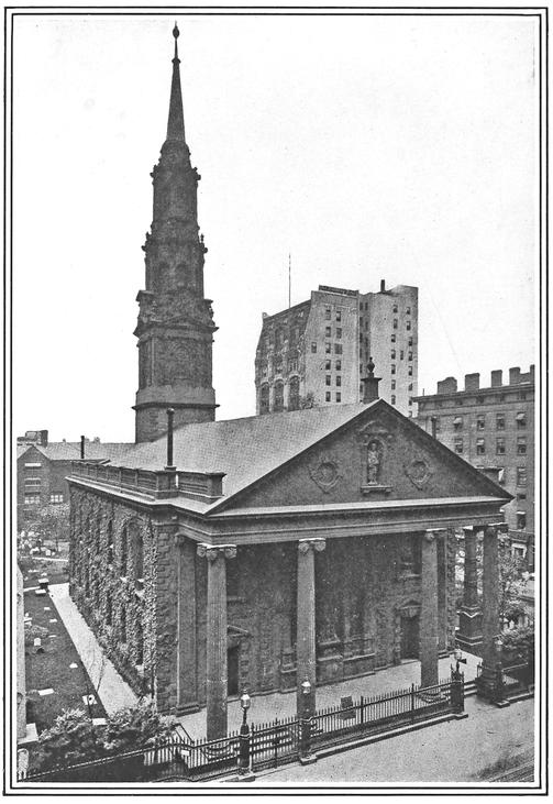16 Possibly people might object if it were proposed to destroy St. Paul’s Chapel, the oldest church edifice in the city, and so with a few other buildings; but the majority of the landmarks must go and hideous skyscrapers arise, “monuments to greed” as they have been termed, half ruining adjacent properties.
