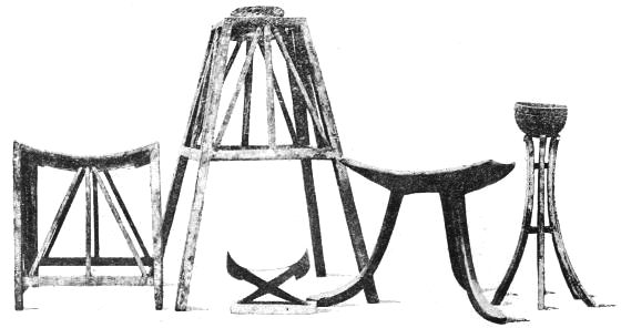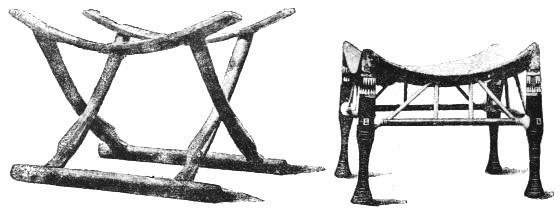 | EXAMPLES OF EGYPTIAN FURNITURE IN THE BRITISH MUSEUM: Stool; Stand for a Vase; Head Rest or Pillow; Workman's Stool; Vase on a Stand; Folding Stool; Ebony Seat inlaid with ivory |