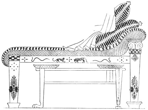 A careful selection of illustrations has been made from examples of established authenticity, the majority of which are to be seen, either in the Museums to which reference is made, or by permission of the owners; and the representations of the different "interiors" will convey an idea of the character and disposition of the Furniture of the periods to which they refer. These illustrations are arranged, so far as possible, in chronological order, and the descriptions which accompany them are explanatory of the historical and social changes which have influenced the manners and customs, and directly or indirectly affected the Furniture of different nations. An endeavour is made to produce a "panorama," which may prove acceptable to many, who, without wishing to study the subject deeply, may desire to gain some information with reference to it generally, or with regard to some part of it, in which they may feel a particular interest.