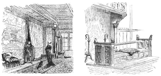 "Is the great Couch up, the Duke of Medina sent?" to which the duenna replies, "'Tis up, and ready;" and then Marguerite asks, "And day beds in all chambers?" receiving in answer, "In all, lady."