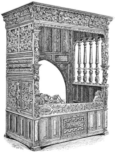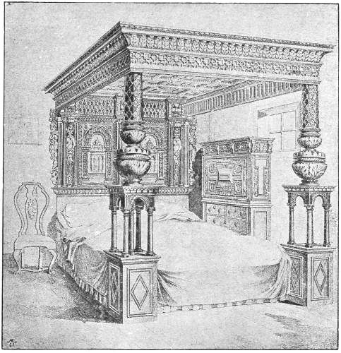 THE RENAISSANCE IN ITALY: Leonardo da Vinci and Raffaelle—Church of St. Peter, contemporary great artists—The Italian Palazzo—Methods of gilding, inlaying and mounting Furniture—Pietra-durá and other enrichments—Ruskin's criticism. THE RENAISSANCE IN FRANCE: François I. and the Chateau of Fontainebleau—Influence on Courtiers—Chairs of the time—Design of Cabinets—M. E. Bonnaffé on The Renaissance—Bedstead of Jeanne d'Albret—Deterioration of taste in time of Henry IV.—Louis XIII. Furniture—Brittany woodwork. THE RENAISSANCE IN THE NETHERLANDS: Influence of the House of Burgundy on Art—The Chimney-piece at Bruges, and other casts of[x] specimens at South Kensington Museum. THE RENAISSANCE IN SPAIN: The resources of Spain in the sixteenth and seventeenth centuries—Influence of Saracenic Art—High-backed Leather Chairs, the Carthusian Convent at Granada. THE RENAISSANCE IN GERMANY: Albrecht Dürer Famous Steel Chair of Augsburg—German seventeenth century carving in St. Saviour's Hospital. THE RENAISSANCE IN ENGLAND: Influence of Foreign Artists in the time of Henry VIII.—End of Feudalism—Hampton Court Palace—Linen Pattern Panels—Woodwork in the Henry VII Chapel at Westminster Abbey—Livery Cupboards at Hengrave—Harrison quoted—The "parler," alteration in English customs—Chairs of the sixteenth century—Coverings and Cushions of the time, extract from old inventory—South Kensington Cabinet—Elizabethan Mirror at Goodrich Court—Shaw's "Ancient Furniture"—The Glastonbury Chair—Introduction of Frames into England—Characteristics of Native Woodwork—Famous Country Mansions—Alteration in design of Woodwork and Furniture—Panelled Rooms at South Kensington—The Charterhouse—Gray's Inn Hall and Middle Temple—The Hall of the Carpenters' Company—The Great Bed of Ware—Shakespeare's Chair—Penshurst Place 47