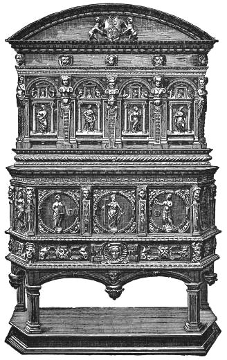 Period of 1,000 years from Fall of Rome, A. D. 476, to Capture of Constantinople, 1453—The Crusades—Influence of Christianity—Chairs of St. Peter and Maximian at Rome, Ravenna, and Venice—Edict of Leo III. prohibiting Image worship—The Rise of Venice—Charlemagne and his successors—The Chair of Dagobert—Byzantine character of Furniture—Norwegian carving—Russian and Scandinavian—The Anglo-Saxons—Sir Walter Scott quoted—Descriptions of Anglo-Saxon Houses and Customs—Art in Flemish Cities—Gothic Architecture—The Coronation Chair at Westminster Abbey—Penshurst—French Furniture in the 14th Century—Description of rooms—The South Kensington Museum—Transition from Gothic to Renaissance—German carved work; the Credence, the Buffet, and Dressoir 17