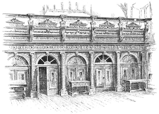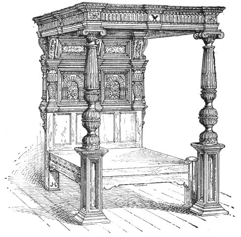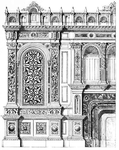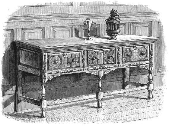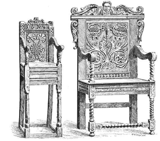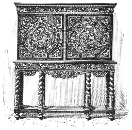 English Home Life in the Reign of James I.—Sir Henry Wotton quoted—Inigo Jones and his work—Ford Castle—Chimney Pieces in South Kensington Museum—Table in the Carpenters' Hall—Hall of the Barbers' Company—The Charterhouse—Time of Charles I.—Furniture at Knole—Eagle House, Wimbledon—Mr. Charles Eastlake—Monuments at Canterbury and Westminster—Settles, Couches, and Chairs of the Stuart period—Sir Paul Pindar's House—Cromwellian Furniture—The Restoration—Indo-Portuguese Furniture—Hampton Court Palace—Evelyn's description—The Great Fire of London—Hall of the Brewers' Company—Oak Panelling of the time—Grinling Gibbons and his work—The Edict of Nantes—Silver Furniture at Knole—William III. and Dutch influence—Queen Anne—Sideboards, Bureaus, and Grandfather's Clocks—Furniture at Hampton Court 91