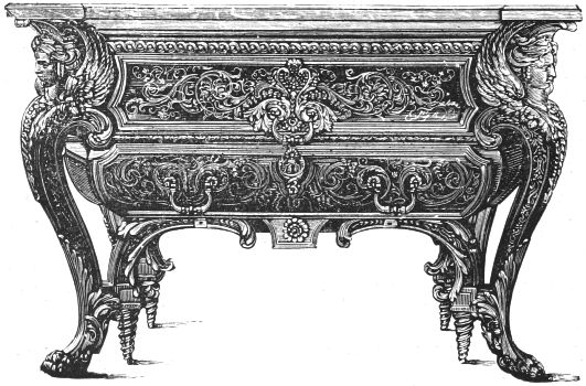 It will be obvious that within the limits of a single volume of moderate dimensions it is impossible to give more than an outline sketch of many periods of design and taste which deserve far more consideration than is here bestowed upon them; the reader is, therefore, asked to accept the first chapter, which refers to "Ancient Furniture" and covers a period of several centuries, as introductory to that which follows, rather than as a serious attempt to examine the history of the Furniture during that space of time. The fourth chapter, which deals with a period of some hundred and fifty years, from the time of King James the First until that of Chippendale and his contemporaries, and the last three chapters, are more fully descriptive than some others, partly because trustworthy information as to these times is more accessible, and partly because it is probable that English readers will feel greater interest in the Furniture of which they are the subject. The French meubles de luxe, from the latter half of the seventeenth century until the Revolution, are also treated more fully than the Furniture of other periods and countries, on account of the interest which has been manifested in this description of the cabinet maker's and metal mounter's work during the past fifteen or twenty years. There is evidence of this appreciation in the enormous prices realised at notable auction sales, when such Furniture has been offered for competition to wealthy connoisseurs.