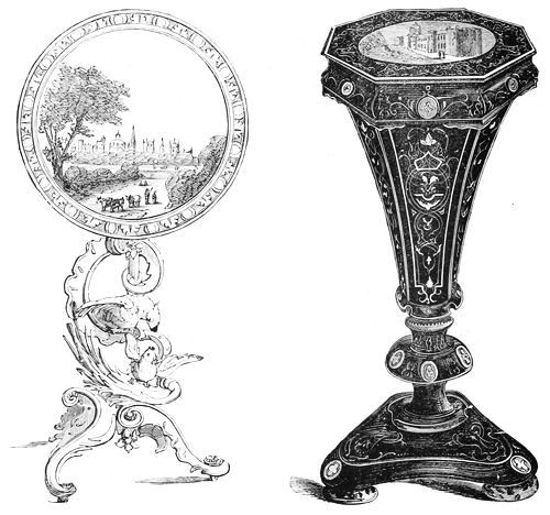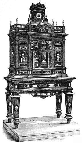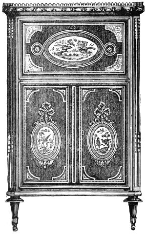 THE GREAT EXHIBITION:—Exhibitors and contemporary Cabinet Makers—Exhibition of 1862, London; 1867, Paris; and subsequently—Description of Illustrations—Fourdinois, Wright and Mansfield—The South Kensington Museum—Talbert's Work—Revival of Marquetry—Comparison of Present Day with that of a Hundred Years ago—Æstheticism—Traditions—Trades-Unionism—The Arts and Crafts Exhibition Society—Kensington School of Woodcarving—Independence of Furniture—Present Fashions—Writers on Design—The New Renaissance—"Trade" Journals—Modern Furniture in other Countries—Concluding Remarks 229