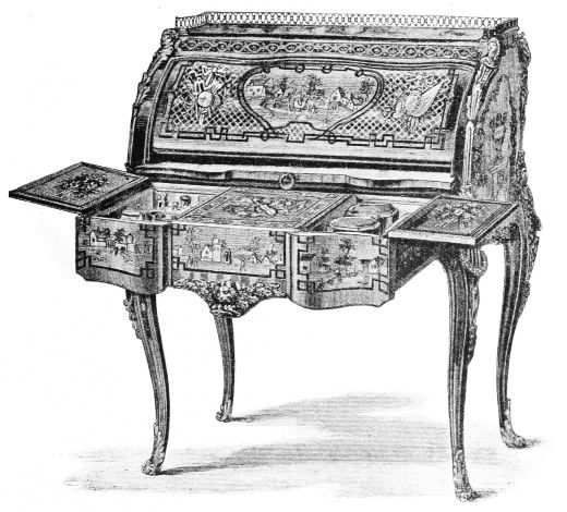 PALACE OF VERSAILLES: "Grand" and "Petit Trianon"—The three Styles of Louis XIV., XV., and XVI.—Colbert and Lebrun—André Charles Boule and his Work—Carved and Gilt Furniture—The Regency and its Influence—Alteration in Condition of French Society—Watteau, Lancret, and Boucher. LOUIS XV. FURNITURE: Famous Ébenistes—Vernis Martin Furniture—Caffieri and Gouthière Mountings—Sêvres Porcelain introduced into Cabinets—Gobelins Tapestry—The "Bureau du Roi." LOUIS XVI. AND MARIE ANTOINETTE: The Queen's Influence—The Painters Chardin and Greuze—More simple Designs—Characteristic Ornaments of Louis XVI. Furniture—Riesener's Work—Gouthière's Mountings—Specimens in the Louvre—The Hamilton Palace Sale—French influence upon the design of furniture in other countries—The Jones Collection—Extract from the "Times" 145