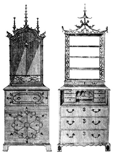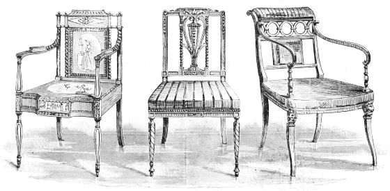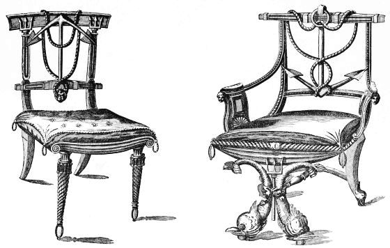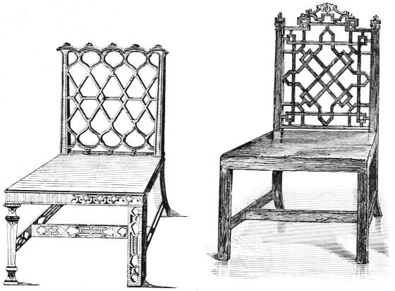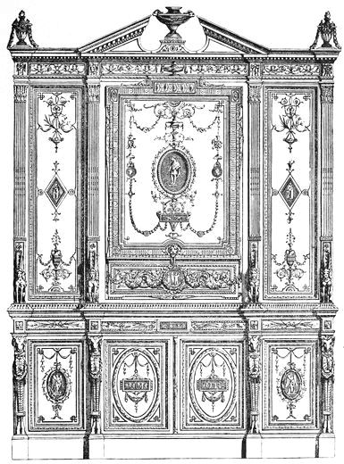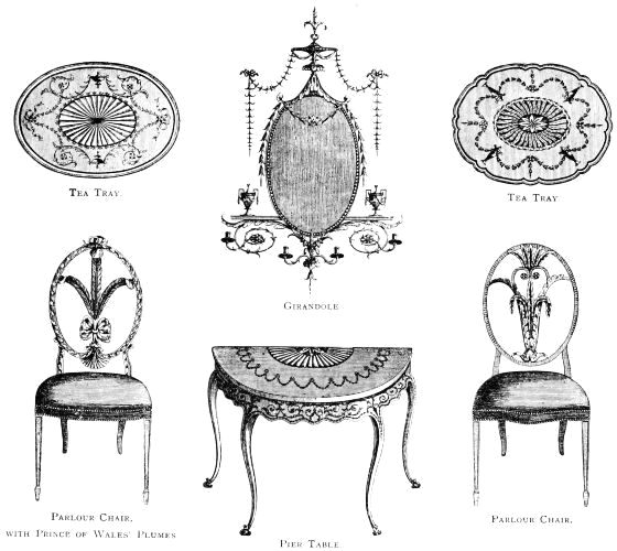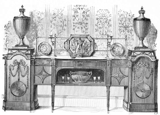 Chinese Styles—Sir William Chambers—The Brothers Adams' work—Pergolesi, Cipriani, and Angelica Kauffmann—Architects of the time—Wedgwood and Flaxman—Chippendale's Work and his Contemporaries—Chair in the Barbers' Hall—Lock, Shearer, Hepplewhite, Ince, Mayhew, Sheraton—Introduction of Satinwood and Mahogany—Gillows, of Lancaster and London—History of the Sideboard—The Dining Room—Furniture of the time 173
