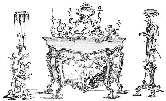 [17] Matthias Lock published "A new book of pier frames, ovals, girandoles, tables, etc." Imp. 8vo., 1769.