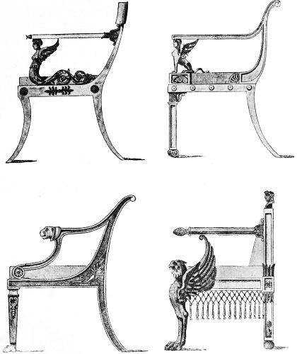 The French Revolution and the First Empire—Influence on design of Napoleon's Campaigns—The Cabinet presented to Marie Louise—Dutch Furniture of the time—English Furniture—Sheraton's later work—Thomas Hope, architect—George Smith's designs—Fashion during the Regency—Gothic revival—Seddon's furniture—Other makers—Influence on design of the Restoration in France—Furniture of William IV. and early part of Queen Victoria's reign—Baroque and Rococo styles—The Panelling of Rooms, Dado, and Skirting—The Art Union—The Society of Arts—Sir Charles Barry and the new Palace of Westminster—Pugin's designs—Auction Prices of Furniture—Christie's—The London Club Houses—Steam—Different Trade Customs—Exhibitions in France and England—Harry Rogers' work—The late Queen's cradle—State of Art in England during the first part of Queen Victoria's reign—Continental designs—Italian carving—Cabinet work—General remarks 203