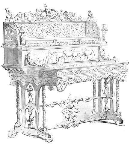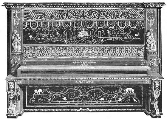 During the period of had taste which prevailed in England thirty or forty years ago, those who made and those who purchased pianos were content to have either the instrument in the most ordinary and commonplace case of mahogany, walnut, or the rosewood which about 1840 came into great favour, or else the cases were designed in an extravagant fashion, and covered with a superabundance of ornament, quite out of keeping with the use of a musical instrument.