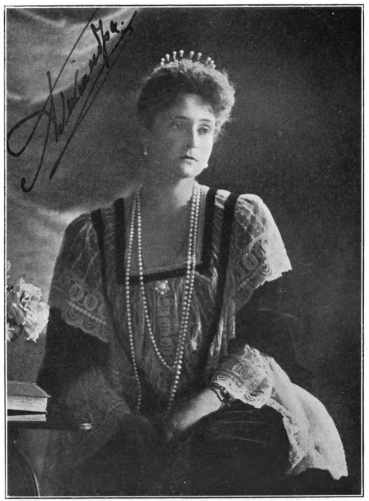 As a young married woman, blessed with many kind relations and friends, it was not long before I took my place in Petrograd society. In 1907, one year after the Japanese war, life was not gay as many families were still in mourning, so those who looked for Court gaieties were disappointed—none being forthcoming. The Empress felt that the war was of too recent a date to warrant much entertaining; she was entirely sincere in this conviction, but her attitude did not meet with general approval. It was argued by the anti-Tsaritsa clique that an Empress of Russia belonged to Society, and not to herself. Her duty was merely to pose as a magnificent figure-head on the barque of pleasure—the war was over, and the world of Society wanted its{44} ceaseless round of empty pleasures once again.