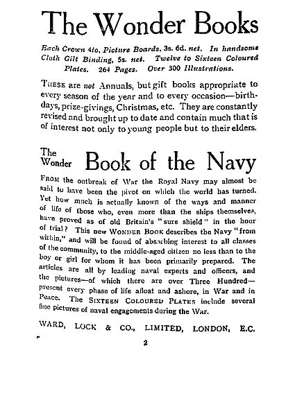 It was the second trench. Beyond it was another, occupied by British soldiers: beyond that again, a mass of tangled barbed-wire, and then the strip of No-Man’s Land dividing the two armies—a strip ploughed up by shells and scarred with craters formed by the bursting of high explosives. Here and there lay rifles, and spiked German helmets, and khaki caps; but no living thing was visible save the cheeky Flemish sparrows that hopped about the quiet space, chirping and twittering as if trying to convince themselves and everybody else that War was hundreds of miles away. The sparrows carried out this pleasant deception every morning, abandoning the attempt as soon as the first German gun began what the British soldiers, disagreeably interrupted in frying bacon, termed “the breakfast hate.” Then they retreated precipitately to the sparrow equivalent to a dug-out, to meditate in justifiable annoyance on the curious ways of men.
