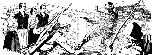"This was an interplanetary war," retorted Phil mildly. "Or rather, it wasn't war, but occupation of the Earth by the enemy. The Jovians were smart enough not to attack Earth directly, but threw their strength at the crucial moment behind the weaker side in the war between Eurasia and the American Alliance. Then they moved in to take over the war-weakened victors."