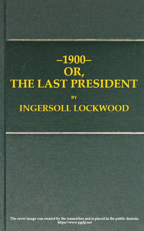 Project Gutenberg's 1900 or, The last President, by Ingersoll Lockwood This eBook is for the use of anyone anywhere in the United States and most other parts of the world at no cost and with almost no restrictions whatsoever. You may copy it, give it away or re-use it under the terms of the Project Gutenberg License included with this eBook or online at www.gutenberg.org. If you are not located in the United States, you'll have to check the laws of the country where you are located before using this ebook. Title: 1900 or, The last President Author: Ingersoll Lockwood Release Date: October 12, 2019 [EBook #60479] Language: English Character set encoding: UTF-8 *** START OF THIS PROJECT GUTENBERG EBOOK 1900 OR, THE LAST PRESIDENT *** Produced by Richard Tonsing and the Online Distributed Proofreading Team at http://www.pgdp.net (This file was produced from images generously made available by The Internet Archive)