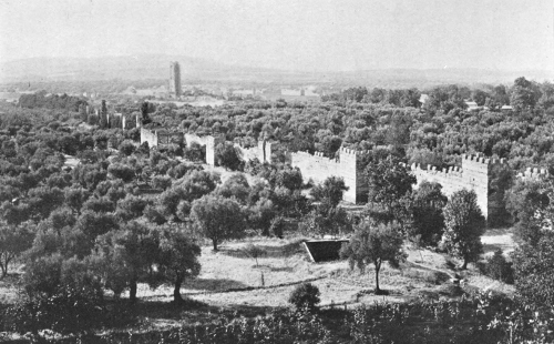 The Roman conquest and civilization—or rather assimilation—of North Africa were slow, tentative and reluctant. Scipio Æmilianus burnt Carthage in 146 B.C.; it was more than a hundred years later that Julius Cæsar handed over Cirta to the soldiers of Sittius. Under Augustus a camp was established at Theveste (Tebessa), and the Third Legion, Augusta, was stationed there with the object of protecting the territory of Cirta, and the proconsular province which is now Tunisia. Under the shelter of this post, during the first century of our era, the great corn lands enclosed by the Aurès mountains were gradually brought under Roman control. The building of Thamagudi in the reign of Trajan, in the year A.D. 100, is evidence of the importance to 246which this region had by that time risen. This process continued during the next two centuries. No doubt as the population of Italy declined, and her fertility decreased, Rome came to rely more and more on the corn of Africa, and more land was continually brought under cultivation. This is the significance of such a city as Timgad, lying over 3000 feet above the sea on a slope of the Aurès mountains.